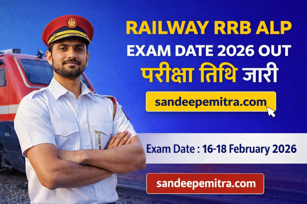 Railway Recruitment Board (RRB), Railway Recruitment Board (RRB) ne apni official website par Assistant Loco Pilot (ALP) ke pado ke liye Exam Datejari kar di hai. Jo candidates is bharti ka intezar kar rahe the, unhe bata dein ki ALP ka exam 16 se 18 February 2026 ke beech ayojit kiya jayega. Is post ke liye application form bharne ki aakhri tarikh 19 May 2025 thi.