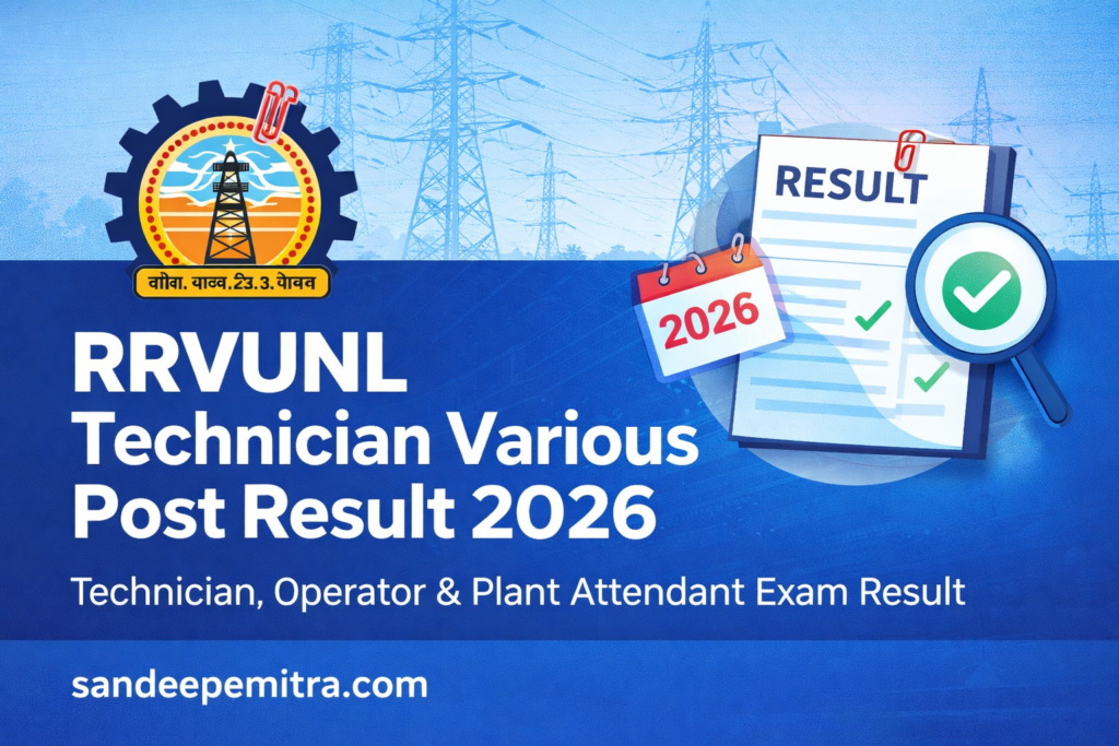 | RRVUNL Technician Various Post Result 2026 – Out Rajasthan Rajya Vidyut Utpadan Nigam Ltd (RRVUNL) : Exam Short Details Sandeepemitra.com |