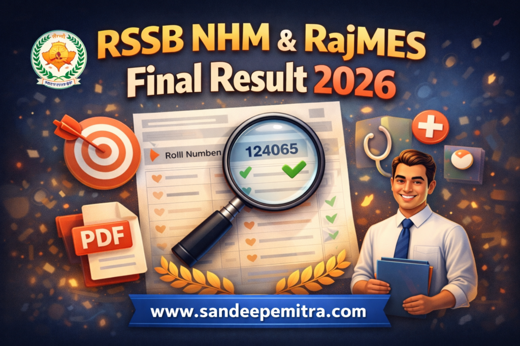 Rajasthan Subordinate And Ministerial Services Selection Board (RSMSSB),NHM & RajMES aur Various Posts Recruitment ka Final Result official website par jaari kar diya gaya hai. Is recruitment process ke tahat exam 02 June 2025 se 13 June 2025 ke beech aayojit kiya gaya tha, jabki online application form bharne ki last date 01 May 2025 rakhi gayi thi. RSSB NHM & RajMES Final Result 2026 Exam mein shamil hone wale candidates apna Final Result Enrollment Number, Registration Number ya Date of Birth ka use karke official portal par login kar ke aasani se check kar sakte hain. Result download aur check karne ke liye direct link niche available hai, jisse candidates turant apna result dekh sakte hain.